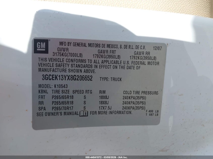 • 3GCEK13YX8G206652
