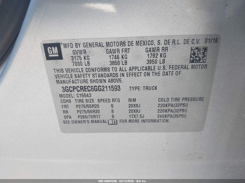 • 3GCPCREC6GG211593