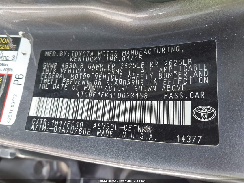 • 4T1BF1FK1FU023158