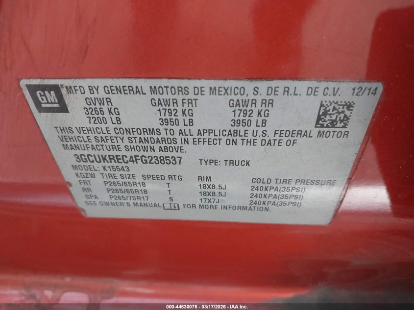 • 3GCUKREC4FG238537