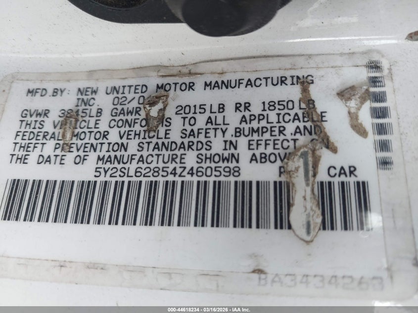 • 5Y2SL62854Z460598