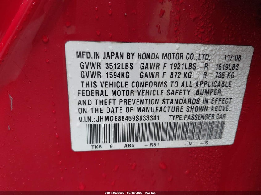 • JHMGE88459S033341