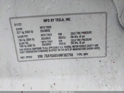 2022 TESLA MODEL Y LONG RANGE DUAL MOTOR ALL-WHEEL DRIVE for Sale in Electric Vehicle Auctions, None