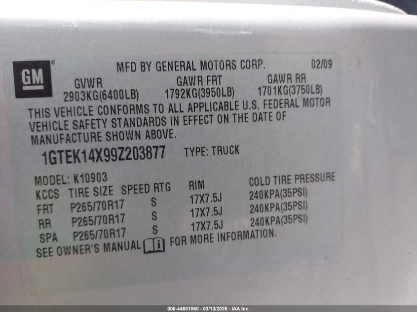 • 1GTEK14X99Z203877