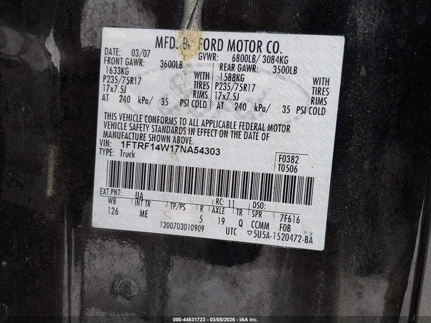 • 1FTRF14W17NA54303