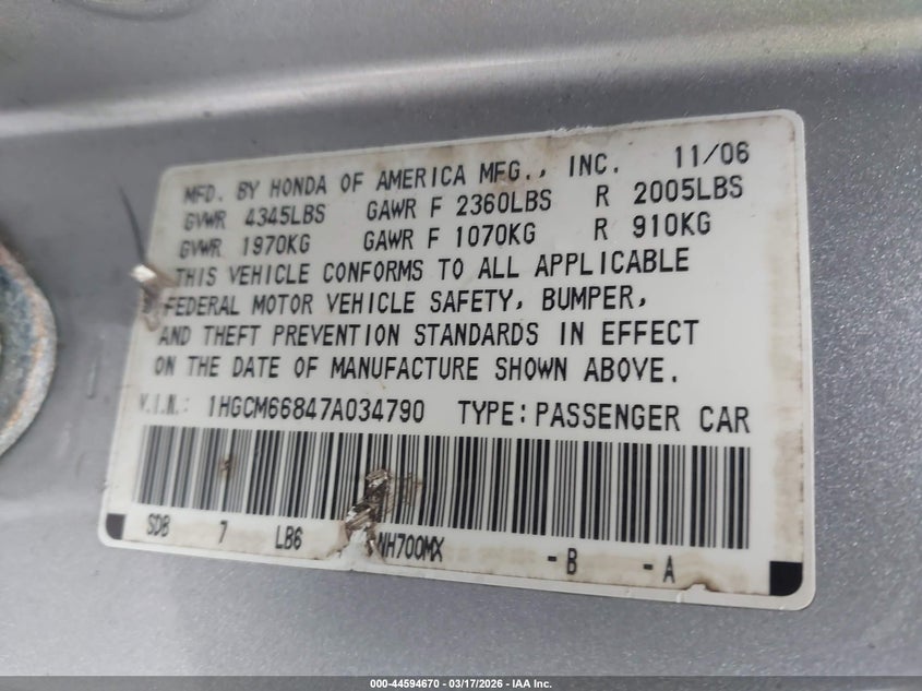 • 1HGCM66847A034790