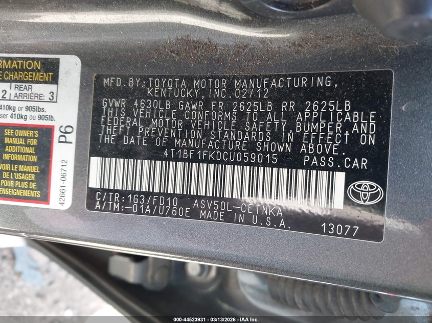 • 4T1BF1FK0CU059015