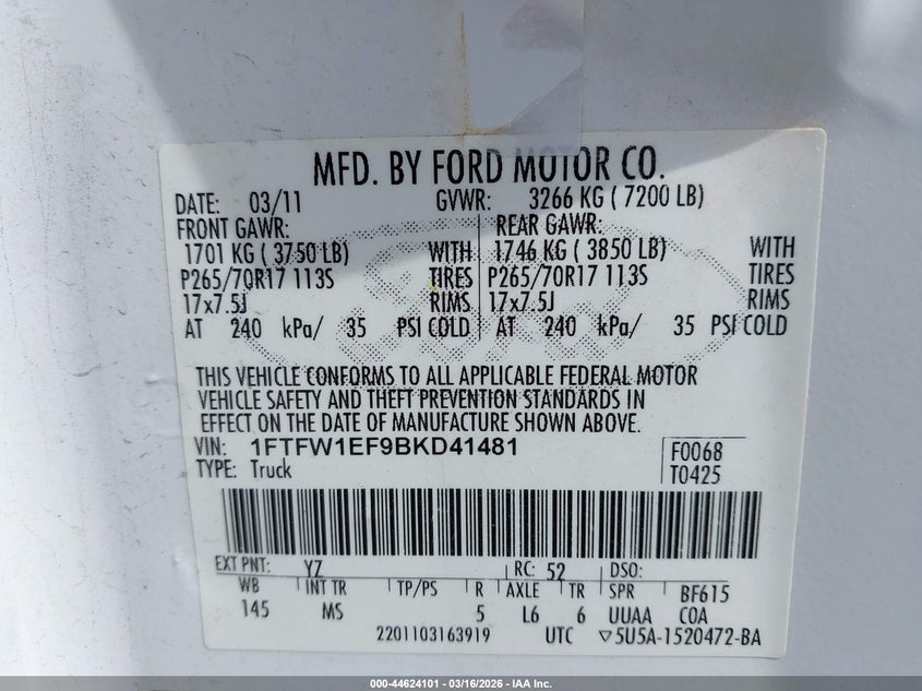 • 1FTFW1EF9BKD41481