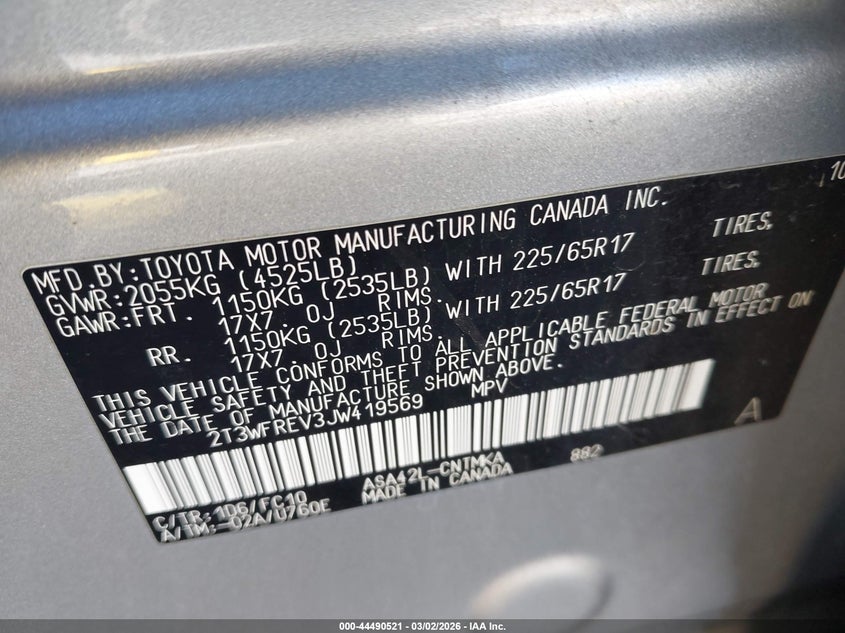 • 2T3WFREV3JW419569