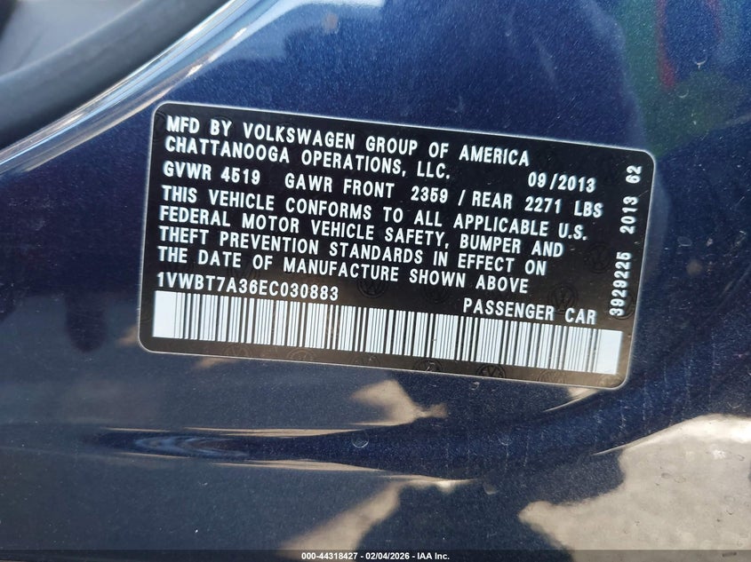 • 1VWBT7A36EC030883