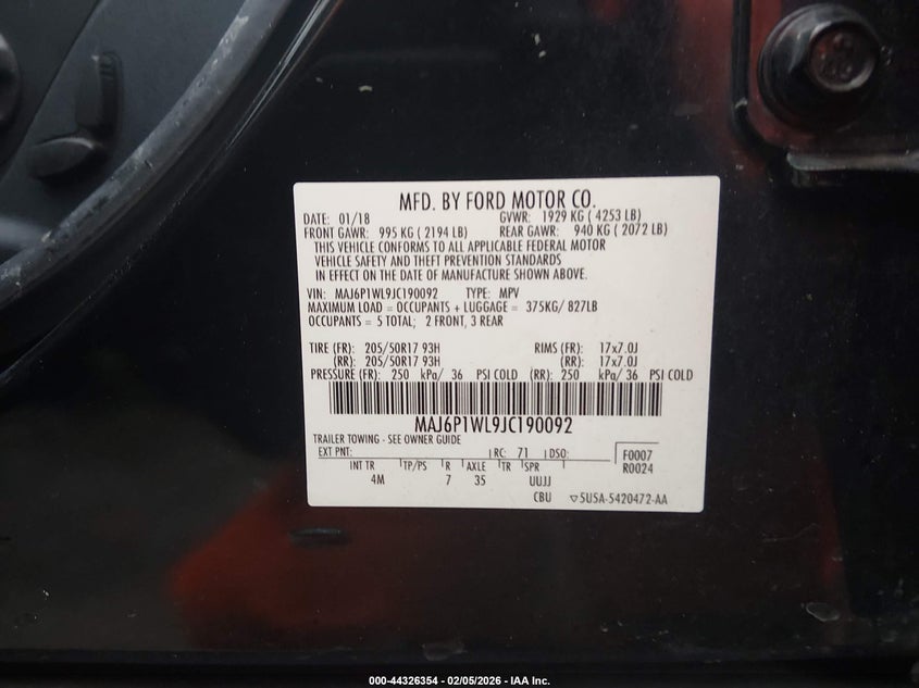 • MAJ6P1WL9JC190092