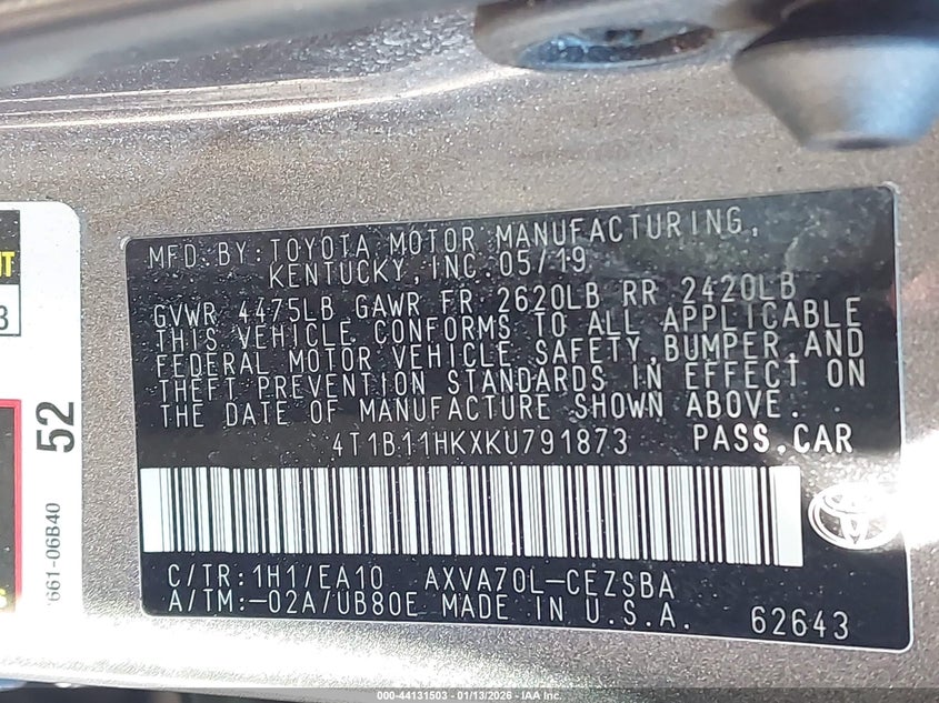 • 4T1B11HKXKU791873