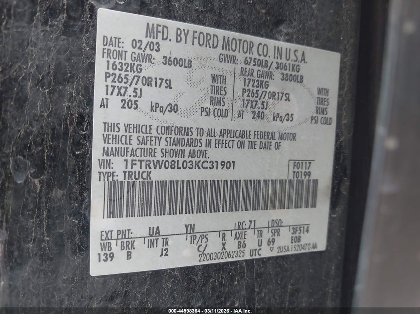 • 1FTRW08L03KC31901