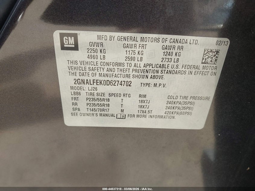 • 2GNALFEK0D6274702