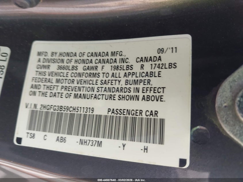 • 2HGFG3B59CH511319
