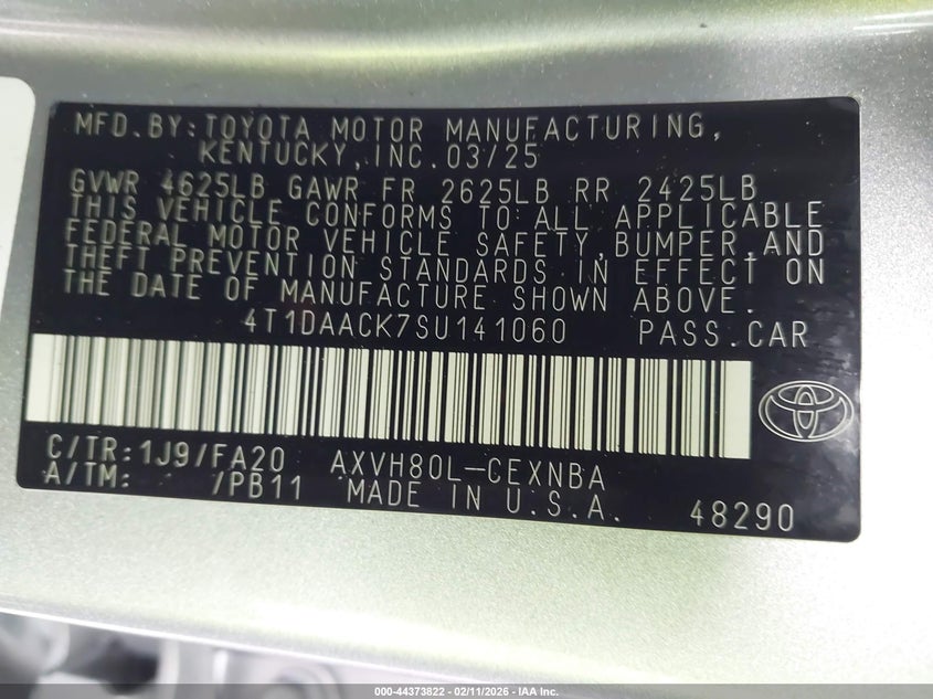 • 4T1DAACK7SU141060