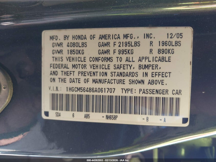 • 1HGCM56486A061707