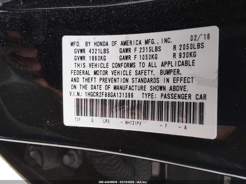 • 1HGCR2F88GA131596