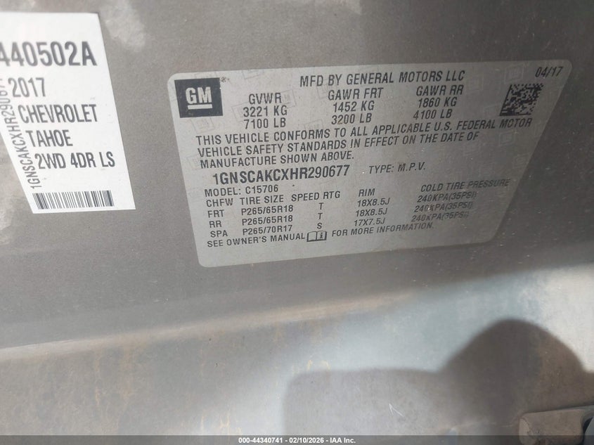 • 1GNSCAKCXHR290677