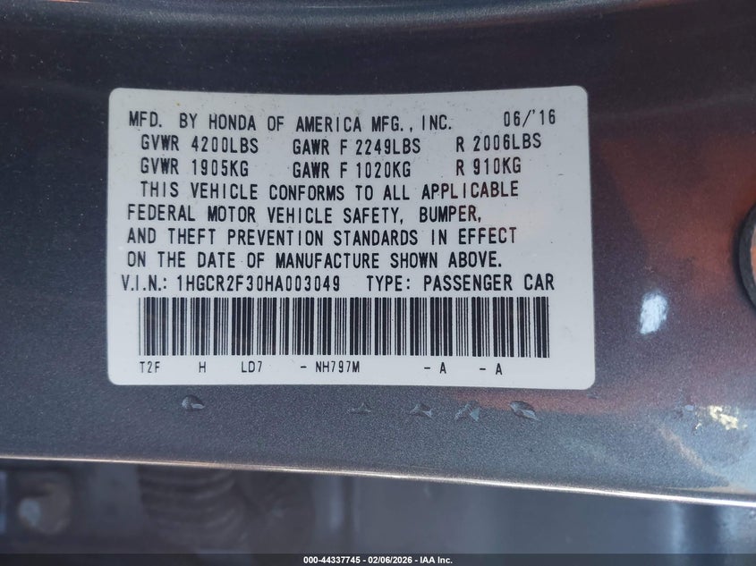 • 1HGCR2F30HA003049
