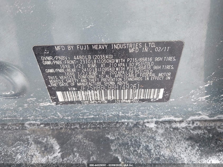 • JF2SHBBC9BH749261