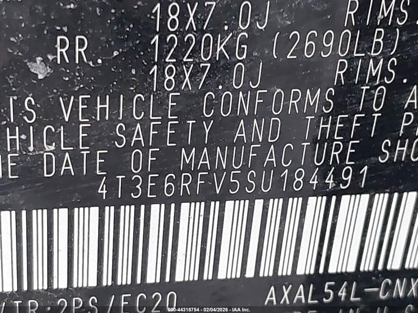 • 4T3E6RFV5SU184491