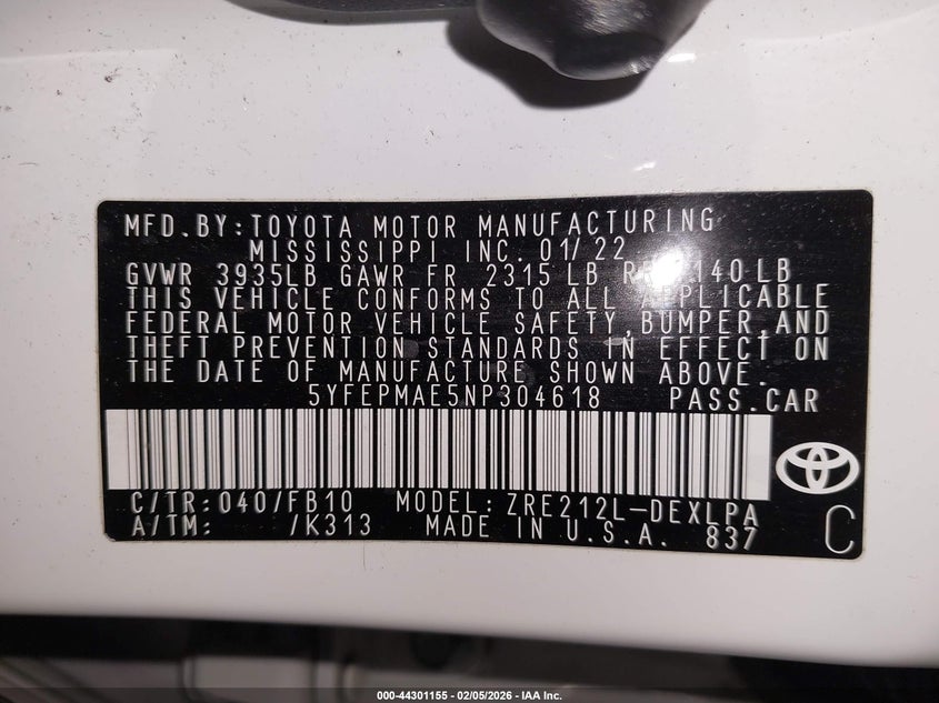 • 5YFEPMAE5NP304618