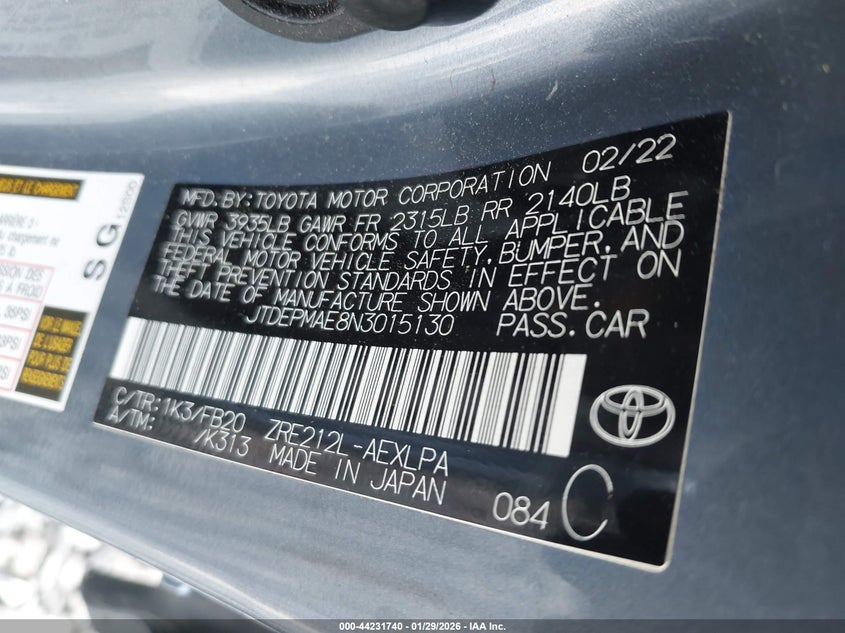 • JTDEPMAE8N3015130