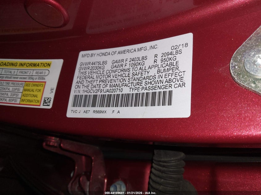 • 1HGCV2F91JA020710