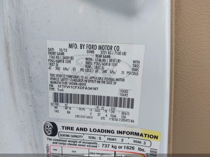 • 1FTFW1CFXDFA34187