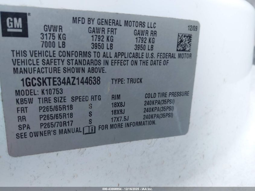 • 1GCSKTE34AZ144638