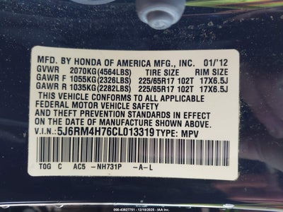 • 5J6RM4H76CL013319