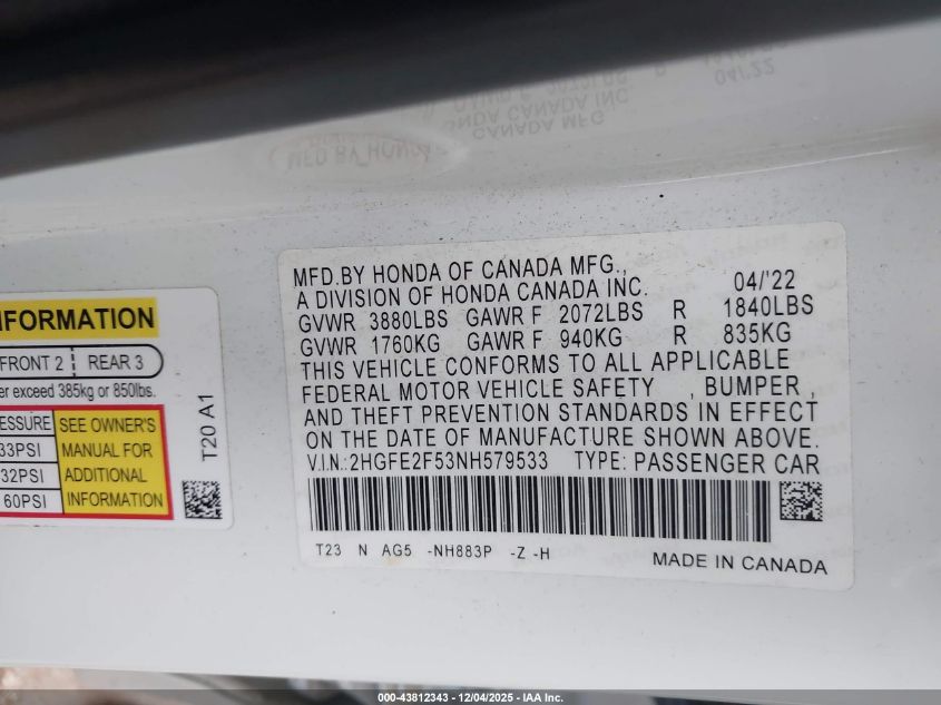 • 2HGFE2F53NH579533