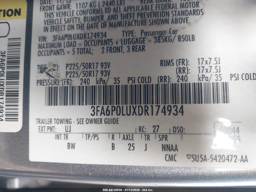 2013 FORD FUSION HYBRID SE HYBRID for Sale in New Castle, DE