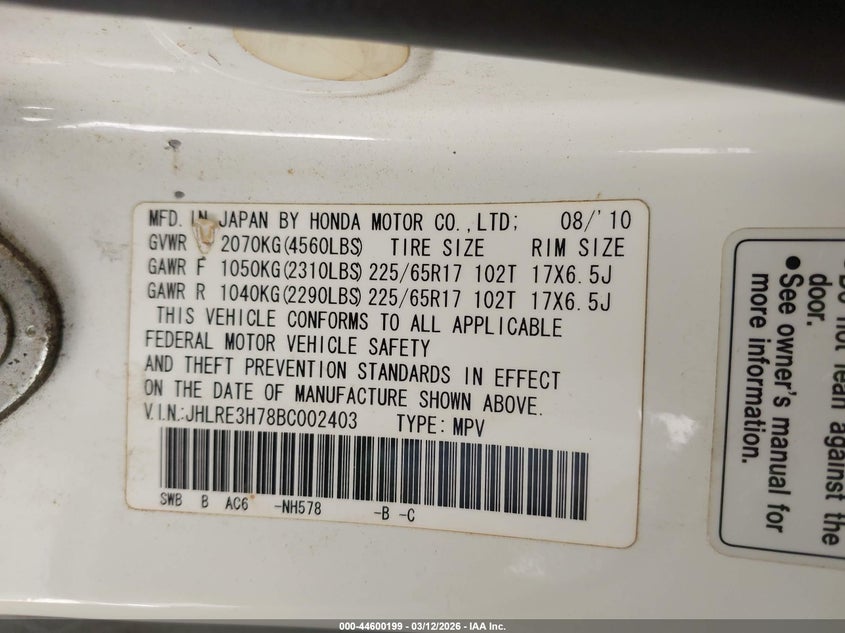 • JHLRE3H78BC002403