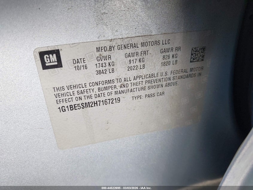 • 1G1BE5SM2H7167219