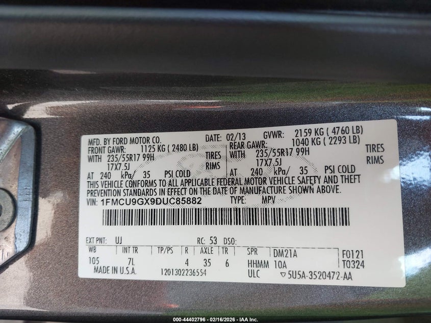 • 1FMCU9GX9DUC85882
