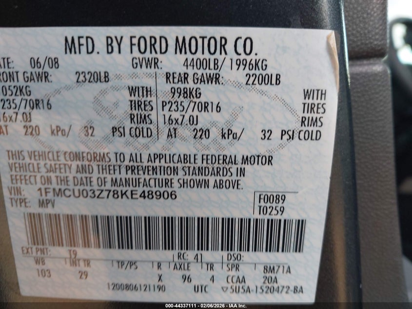 • 1FMCU03Z78KE48906