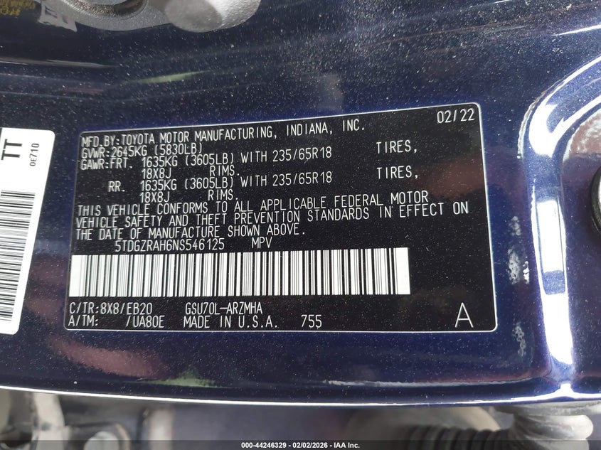 • 5TDGZRAH6NS546125