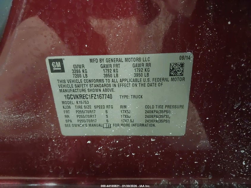 • 1GCVKREC1FZ167740