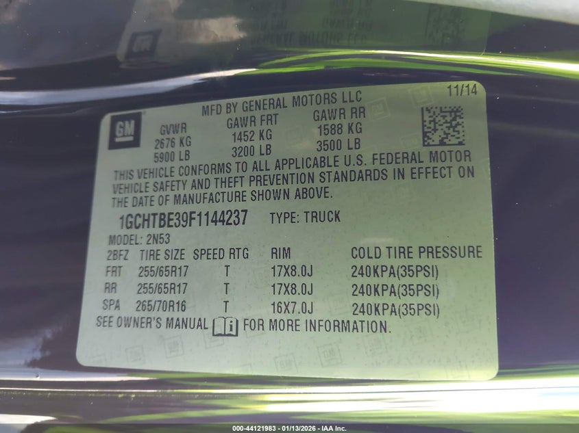 • 1GCHTBE39F1144237