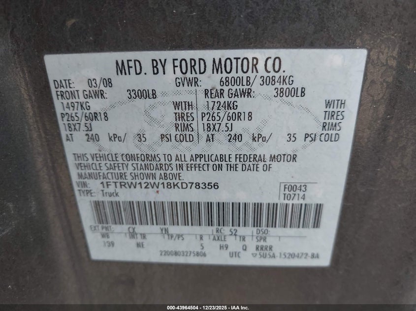 • 1FTRW12W18KD78356