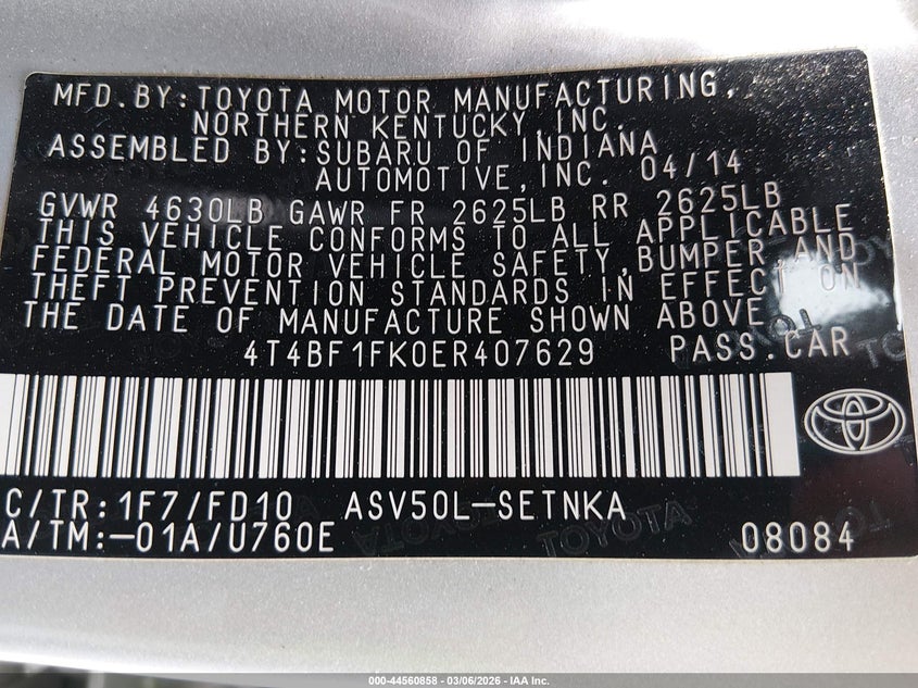 • 4T4BF1FK0ER407629