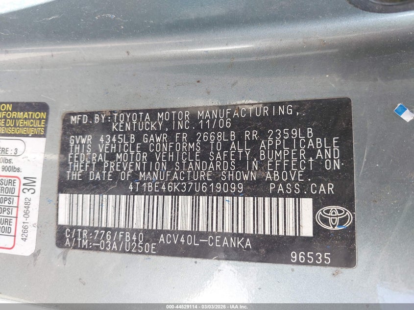 • 4T1BE46K37U619099
