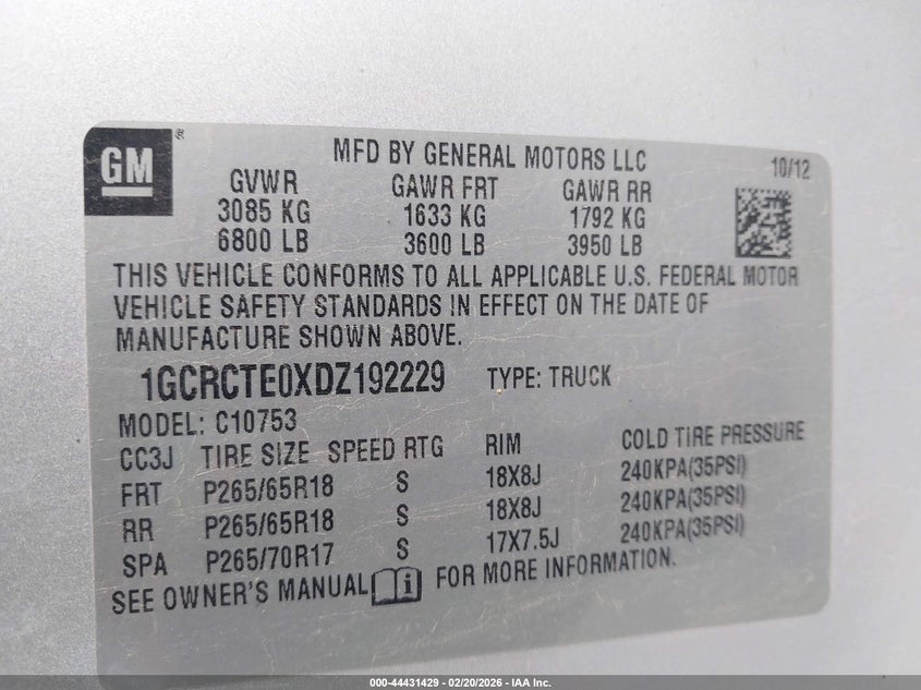 • 1GCRCTE0XDZ192229