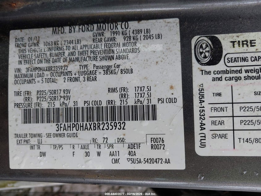 • 3FAHP0HAXBR235932