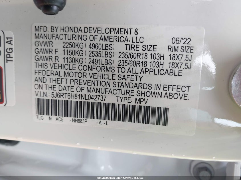 • 5J6RT6H81NL042737