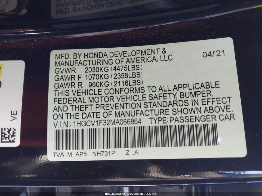 • 1HGCV1F32MA066864