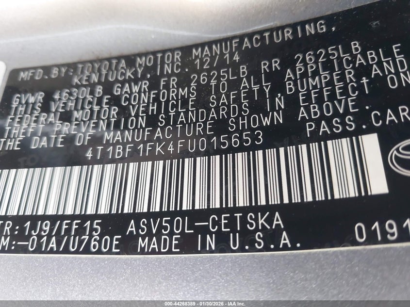 • 4T1BF1FK4FU015653