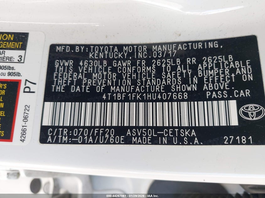 • 4T1BF1FK1HU407668